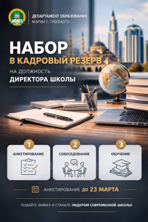 17.03.2026В ГРОЗНОМ ОБЪЯВЛЕН НАБОР В КАДРОВЫЙ РЕЗЕРВ ДИРЕКТОРОВ ШКОЛ В РАМКАХ ПРОЕКТА «ДИЗАЙНЕРЫ ОБРАЗОВАНИЯ».